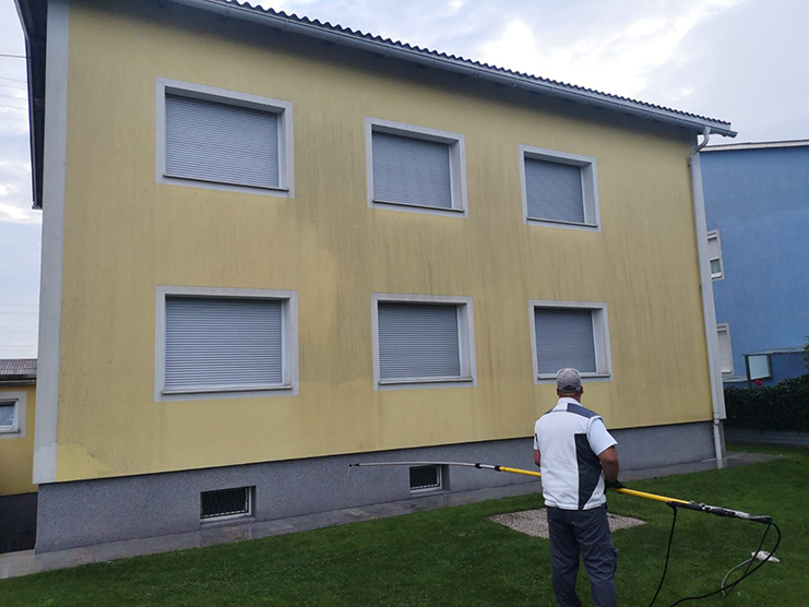 | Arbeiten ohne Gerüst bis 14 m Höhe dank Teleskoplanze. | |||